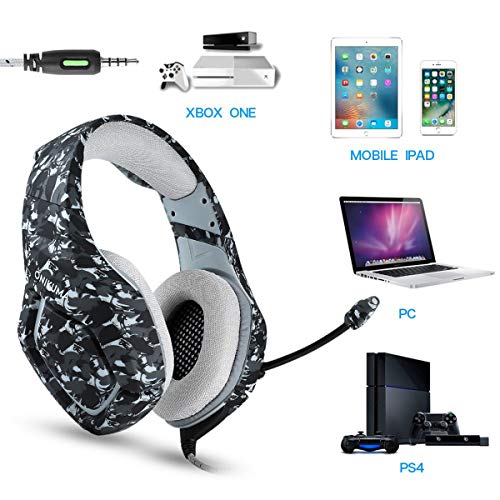 Cuffie Gaming per PS4 Xbox One, Auricolare Gioco Noise Cancelling Controllo del Volume Stereo Headset per Nintendo Switch, PC Portatile, Tablet, Camuffamento