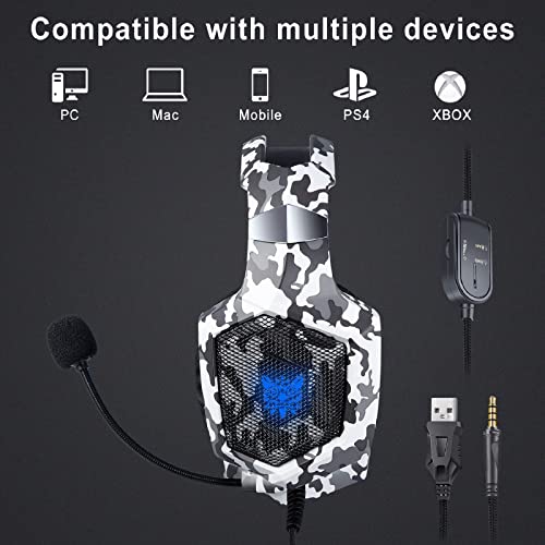 Cuffie Gaming, MACTREM Cuffie con Microfono, Audio Stereo, Luci LED (7 Colori Regolabili), Compatibile con PS4/Xbox One/PC/Mac