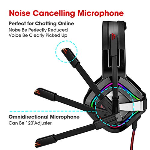 3I Dn. Cuffie da Gaming per Switch PS4 PC con Microfono Luce LED Cancellazione di Rumore Controllo di Volume Confortevole per Mac Laptop (rosso)