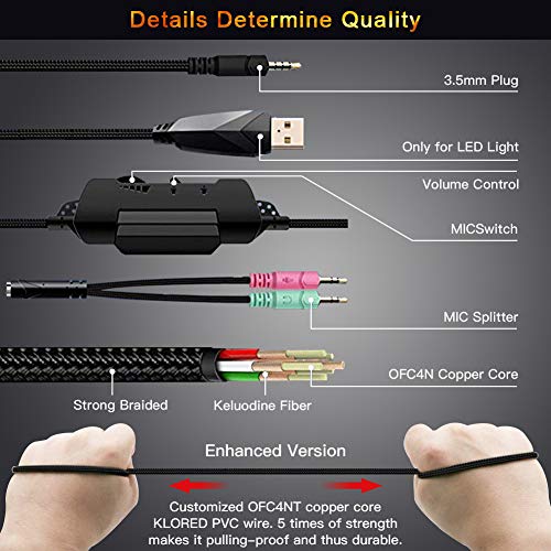 Ampia gamma di applicazioni: questo auricolare di gioco con connettore da 3.5 mm, una y splitter. e 'adatto per PS4, XBOX One, PC, Mac, Computer portatile, telefono cellulare, iPad, ecc