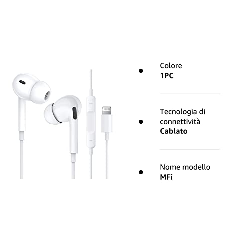 Cuffie in-ear per iPhone certificate Apple MFi con connettore Lightning Auricolari con filocablato Forniscono controllo del volume e del microfono compatibile con 13/12/11/XS/XS Max/X/XR/SE/8 7 Plus