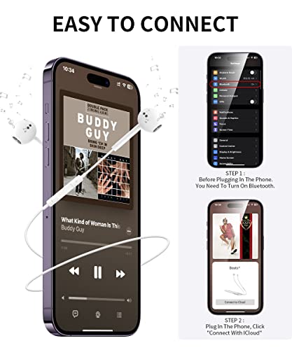 【Facile da usare】: 2022 nuove cuffie, devi prima accendere Bluet000th sul tuo telefono, quindi collegare le cuffie al tuo iPhone, pochi secondi dopo apparirà una finestra pop-up e devi fare clic su "Connetti con iCloud".(Il secondo utilizzo si connetterà automaticamente.)