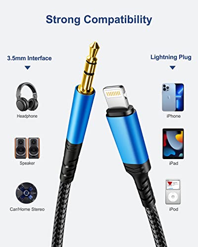 Cavo Aux Cuffie iPhone [Certificato Apple MFi] 1M Lightning Audio Auto Jack da 3,5 mm Ausiliario Premium in Nylon Compatibile con iPhone 12/12 Pro/12 Pro Max/13/13 Pro/SE/11/11 Pro/X/XS/XR/8/Autoradio