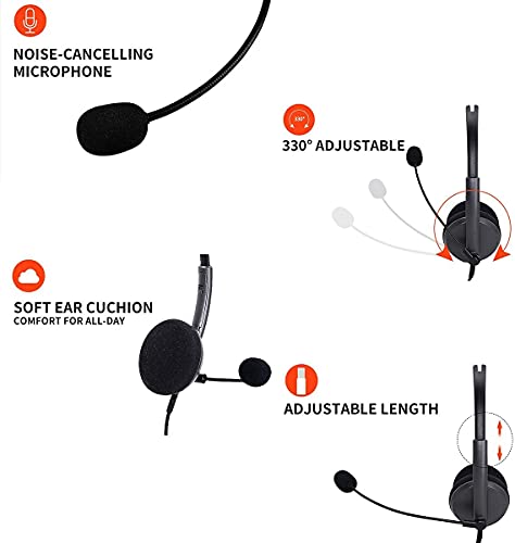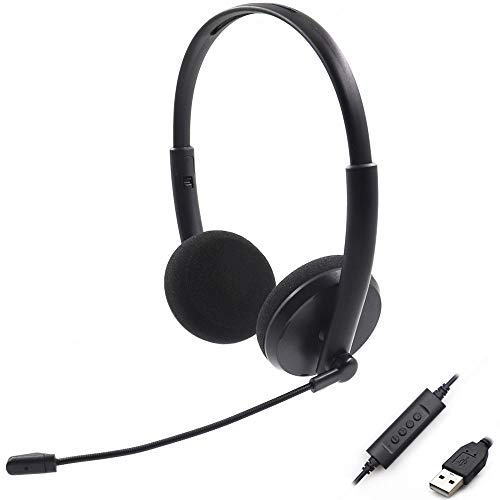 Controlli 2 in 1 con jack audio da 3,5 mm. L'auricolare per PC può essere collegato al PC con presa USB o con cavo audio da 3,5 mm a tablet, telefoni cellulari e altri dispositivi facilmente il volume e silenziare il pannello di controllo. L'auricolare per PC aziendale ha una fascia regolabile e cuscinetti auricolari in morbida pelle sintetica migliorano il comfort durante l'intera giornata. (Suggerimenti: Si prega di scegliere una connessione USB se si desidera abilitare i controlli del volume e del microfono)