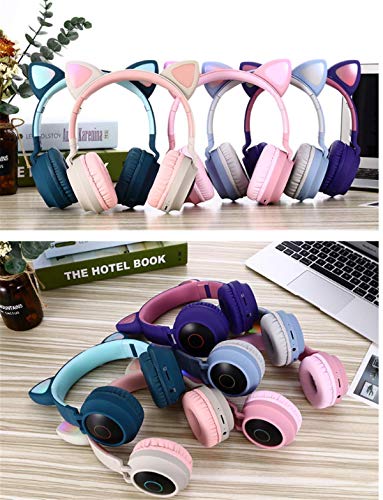 Cuffie Over-Ear bluetooth per bambini, con orecchie da gatto, luci LED, senza fili, con controllo del volume per iPhone/iPad/smartphone/laptop/PC Blu