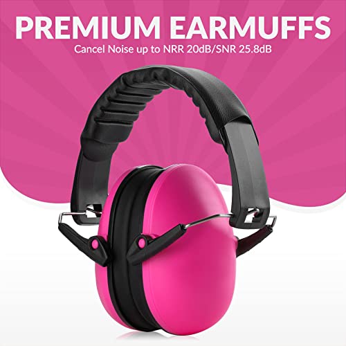 Cuffie con Protezione dal Rumore - Colore Rosa Protezione per Udito e Cancellazione del Rumore Cuffie con Riduzione Antirumore Sicura, Adatte a Bambini e Adulti per Sparare, Cacciare, Lavori col Legno