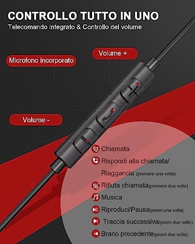 【Telecomando Integrato & Controllo del volume & Magnetico】Auricolari usb c sono dotati di pulsanti intelligenti multifunzionali in linea per una facile regolazione del volume, riproduzione/pausa, brano successivo/precedente. La funzione vivavoce può essere utilizzata per rispondere/rifiutare/terminare le chiamate durante la guida/il jogging. I due auricolari sono dotati di magneti incorporati che si attaccano magneticamente l'uno all'altro e si appendono al collo quando non vengono utilizzati.