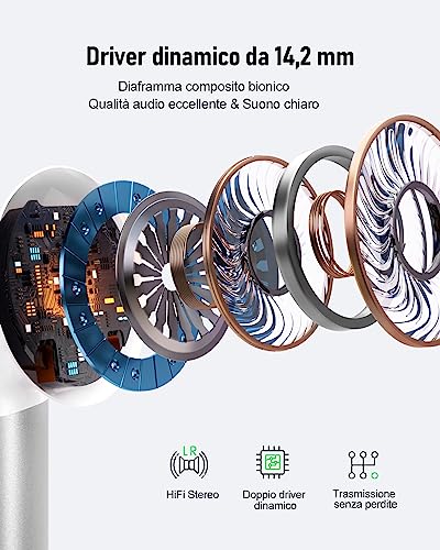 【Stereo & Mani Libere & Plug and Play】Le cuffie samsung galaxy a54 5g con chip DAC integrato supportano la trasmissione stereo ad alta risoluzione e senza perdite con una frequenza di campionamento audio fino a 384 kHz/32 bit per catturare più dettagli sonori. Grazie ai driver dinamici da 14,2 mm, all'acustica finem