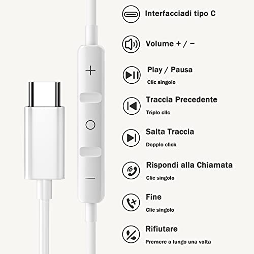【Ampia Compatibilità】 Questi cuffie in-ear tipo c funzionano con tutti i dispositivi di tipo c senza audio jack da 3,5 mm, inclusi Samsung Galaxy A54/A34/A53/A33/S23/S23+/S23 Ultra/S22/S22+/S22 Ultra/S21 FE/S21 Ultra/S21 +/S21/S20/S20 FE/S20 +/S20 Ultra/Z Fold 4/Z Flip 4,Huawei P50 Pro/P40 Pro/P30 Pro/P20, Huawei Mate 50/50 Pro/40 Pro, OnePlus 11/ 10/10 Pro/10T/9/9 Pro, Google Pixel 7/7 Pro/6 Pro/6, OPPO Reno 6 Pro/6, OPPO Find X3 Pro/X3, altri telefoni e tablet con connessione audio di tipo c.