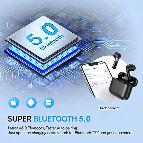 【Accoppiamento automatico POP-UPS e smart touch】Dopo aver rimosso l'auricolare, verrà automaticamente visualizzata una finestra sull'interfaccia di iPhone. Fai clic su Fine per accoppiare. Apri l'interfaccia Bluetooth, trova T12TWS e fai clic su Fine per completare l'associazione. Il nuovo T12TWS aggiunge la funzione touch, supporta la riproduzione / pausa della musica con un tasto, rispondi / riaggancia il telefono, brano successivo / precedente.