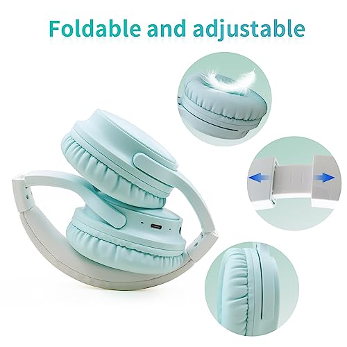 SLuB Cuffie Wireless Over Ear, Cuffie Bluetooth Pieghevoli, Suono Stereo HD, Microfono HD Incorporato, 30H di Riproduzione, Adatto per Telefono, PC, TV, Giochi, Esterno, Ufficio (Verde)