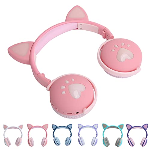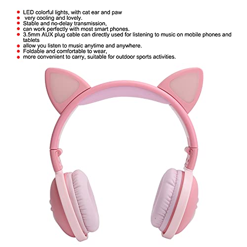 Cuffie wireless con orecchie di gatto Cuffie sportive pieghevoli HIFI, Audio ad alta risoluzione Bassi profondi Comodi cuscinetti auricolari proteici Con luce LED (Rosa)