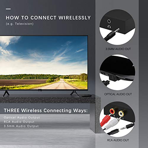 Compatibilità: questo auricolare wireless è compatibile con TV, radio FM, computer, tablet, laptop, smartphone, ecc. Puoi collegare questo auricolare al tuo dispositivo tramite la porta audio digitale OPTICAL, l'uscita audio da 3,5 mm e l'uscita audio RCA. NOTA: verificare sul dispositivo se è presente un'uscita audio digitale OTTICA o da 3,5 mm o RCA prima dell'acquisto.