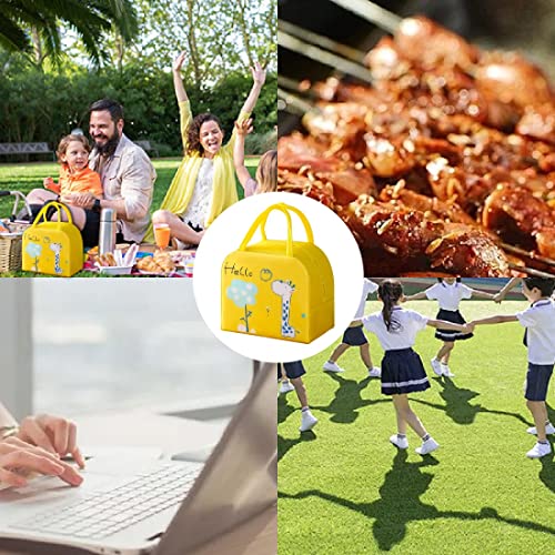 CUHZA 1 Pezzi Borsa Termica Porta Pranzo Piccola con 1 Cartellino Portanome, Riutilizzabili Bambini all'Acqua (Giallo)