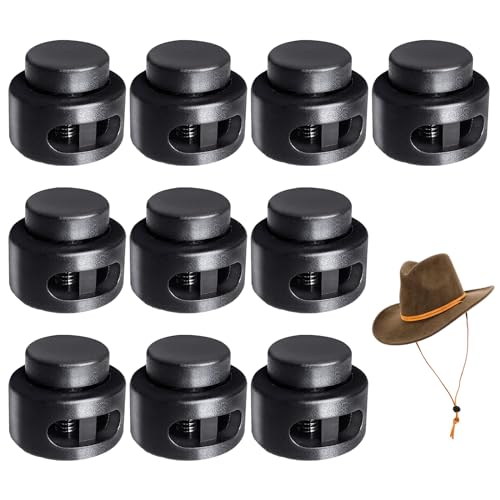 CUIDAKJ 10 Pezzi Fermacorda a Molla, Cilindrico Fermacorda,Fermacorda Foro 5 * 4MM, Fermacorda Scorrevole in Plastica, Lucchetto per Corda a Doppio Foro per Zaini e Accessori Artigianali (Nero)