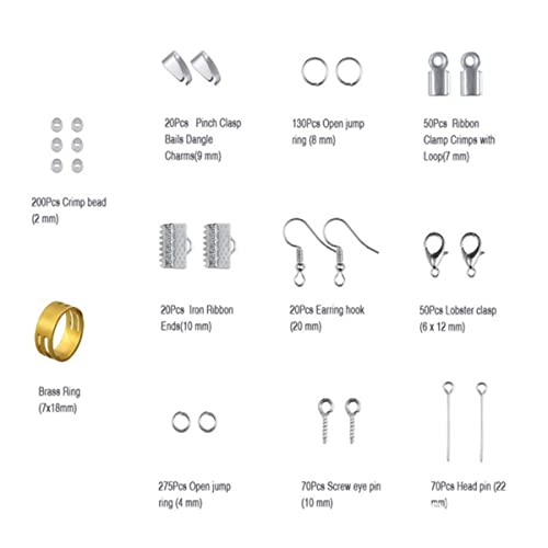Kit di Accessori per Gioielli: Riceverete una scatola con 1060 pezzi di 20 diversi accessori per gioielli in argento. Si tratta di un meraviglioso kit perfetto per fai da te, riparazione di gioielli e bellissimi orecchini, collane, bracciali, ecc