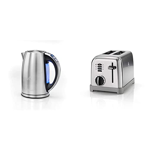 Cuisinart CPK17E Bollitore elettrico, Acciaio inox, display LCD e temperature regolabili da 85°C a 100°C & Tostapane 2 fette CPT160E, Acciaio inox, Funzione Bagel