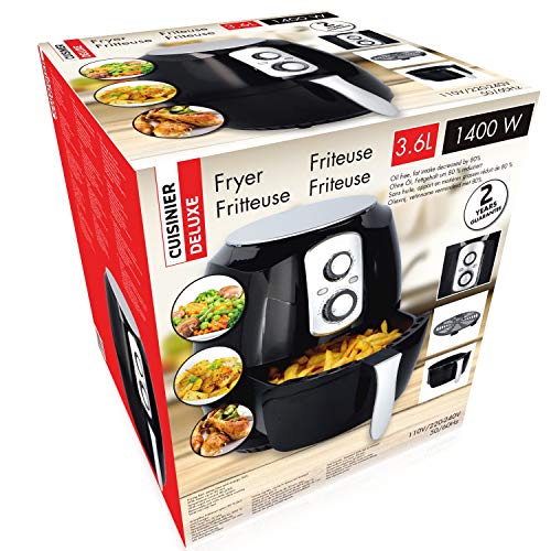 Cuisinier Deluxe Friggitrice ad Aria Senza Olio, 1350 W + 3,6 litri - Nero/Argento