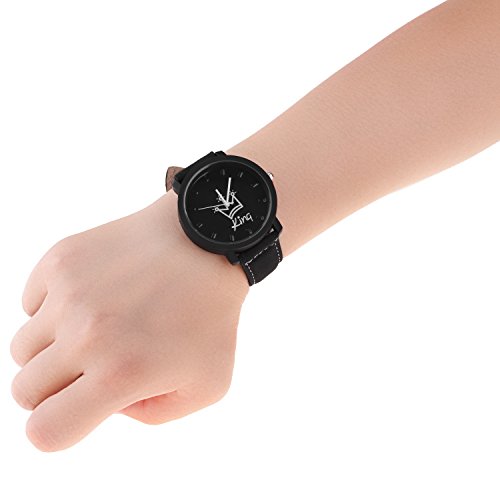 Cuitan 1pc Moda Coppie Quarzo Orologio da Polso da Uomo (Nero), King Corona Orologi Rotondi Quadrante con Cinturino in Cuoio PU Wrist Watch per gli Uomini Studenti Amanti Regalo