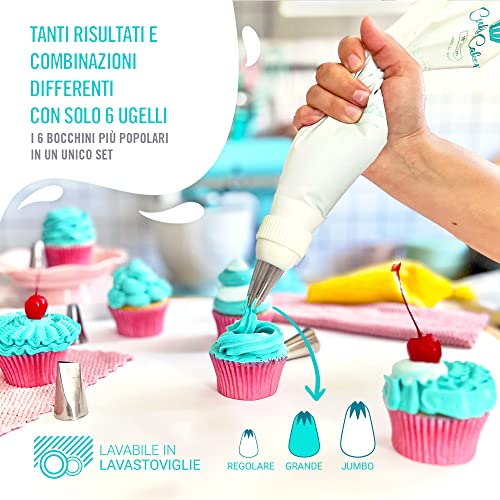 Cukkicakes Kit Pasticceria Professionale (9 Pezzi): Sac a Poche Riutilizzabile + 6 Beccucci Grandi (1M, 2D, 4B, 1A, 124, 895), Bocchette per Decorare Cupcakes, Torte, Zeppole - Made in Korea & Japan