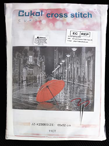 Cukol Kit Punto Croce Ombrello, Punto Croce Kit da Ricamare, Kit Quadro Quadri Punto Croce Prestampato Completo Stampati Schemi per Principianti Bambini Set Kit Ricamo Ricami Disegni 65 x 52 cm