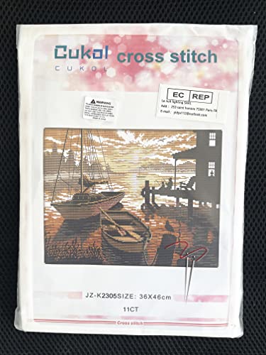 Cukol Kit Punto Croce Tramonto, Punto Croce Kit da Ricamare, Kit Quadro Quadri Punto Croce Prestampato Completo Stampati Schemi per Principianti Bambini Set Kit Ricamo Ricami Disegni 52 x 42 cm