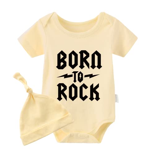 Culbutomind Born to Rock - Body per neonato, a maniche corte, per neonati, Cappello giallo a rocce, 12 mesi