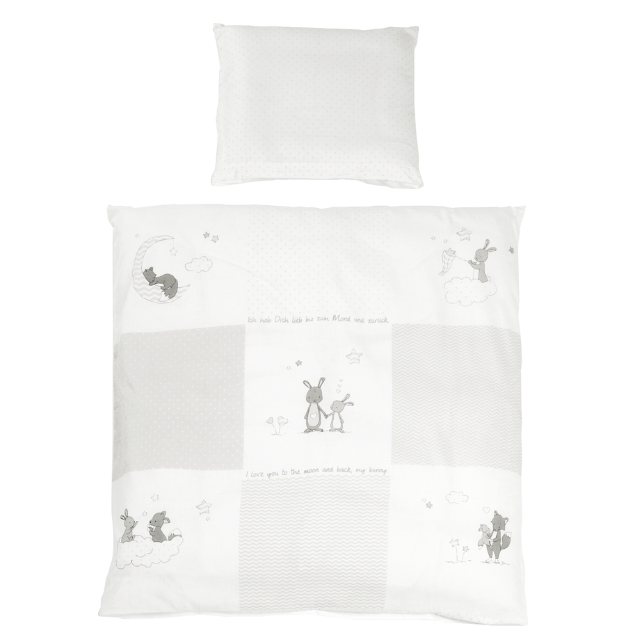Roba Culla con set biancheria Little Stars, bianco Con i set completi di roba, i piccoli possono essere cullati meravigliosamente per addormentarsi. La culla e la morbida biancheria rendono il sonno particolarmente confortevole. Se il movimento dovesse diventare eccessivo, le culle roba possono essere bloccate in modo rapido e semplice con un pulsante. Dettagli del prodotto: Culla: Colore: bianco Materiale superficie di sdraio: MDF Materiale telaio/barre: legno compensato laccato Dimensioni superficie di sdraio: Larghezza x Lunghezza 40 x 90 cm Dimensioni: Ampiezza x Lunghezza x Altezza 54 x 104 x 79 cm Misure con baldacchino: Ampiezza x Lunghezza x Altezza 53 x 93,5 x 150 cm Funzione dondolo con pulsante di blocco Capacità di carico: fino a 15 kg Con rotelle bloccabili Materasso: Dimensioni: larghezza x lunghezza 40 x 90 cm Materiale rivestimento: 100% cotone Materiale nucleo: pile di poliestere Set biancheria: Colore: grigio / bianco Design: Fox & Bunny Dimensioni: 80 x 80 / 35 x 40 cm Materiale: 100% cotone Materiale copripiumino e federa: 100% cotone, imbottitura in pile di poliestere Materiale paracolpi: 100% cotone, imbottitura in pile di poliestere Materiale baldacchino: 100% poliestere, finiture 100% Baumwolle Incluso nella spedizione: Culla Materassino in pile Paracolpi Copripiumino e federa Asta e baldacchino Set di ruote con freni