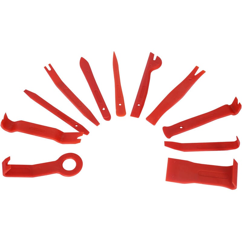 Set da 11 pezzi di cunei per rifiniture per diversi marchi e modelli di veicoli Per la rimozione delle finiture interne dell'auto In caso di corrispondenza, può essere utilizzato anche per camper e barche Realizzato in plastica antiurto (nylon) In pratico astuccio arrotolabile con chiusura in velcro Questo set di cunei da 11 pezzi è ottimale per rimuovere le finiture dei veicoli. Che si tratti di finiture delle porte, del cruscotto o di altre finiture interne, il set di strumenti permette di rimuovere un'ampia varietà di modanature senza danneggiarle. I cunei sono realizzati in plastica resistente agli urti (nylon), in modo da essere da un lato robusti e dall'altro, grazie al materiale e alla lavorazione, da non graffiare durante la rimozione della rifinitura o di altri componenti. I cunei da taglio hanno un peso ridotto e sono facili da afferrare grazie al loro design compatto. Questo set versatile permette di raggiungere anche i componenti più inaccessibili del veicolo, in modo da