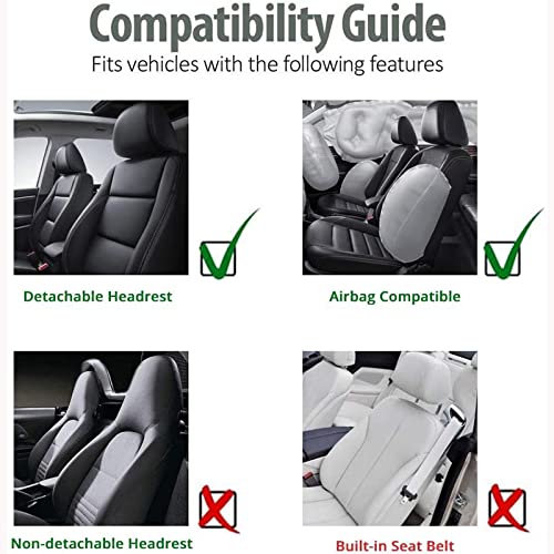 MANTENERE FUNZIONALITÀ:I coprisedili sono progettati intorno all'auto, mantenendo la piena funzionalità e il controllo del sedile, come airbag, cinture di sicurezza, braccioli e regolazioni del sedile. I copripoggiatesta separati consentono una facile regolazione del poggiatesta per un comfort e una sicurezza ottimali