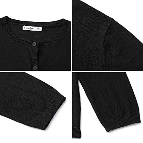 CUNYI Ragazze Girocollo Cardigan Leggero Button-up Cotone Maglia Maglione con Bottoni Scuola Uniforme per Ragazza, Nero 120