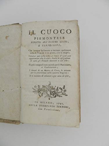 Il cuoco piemontese perfezionato a Parigi. Torino, 1776