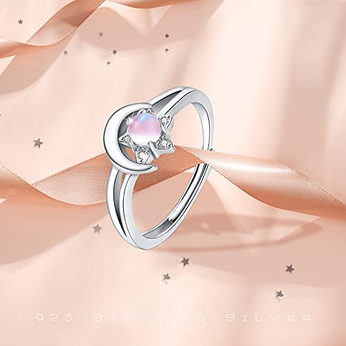 CUOKA MIRACLE Anello pietra di luna argento 925 Anello Luna e Stella Anello Regolabileper donne ragazze (Rosa)
