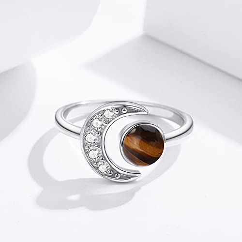 CUOKA MIRACLE Anello Luna con zirconi, Argento 925 Anello Occhio di tigre Donne, Anelli Aperti Regolabili con Occhio di tigre Arcobaleno per Donne Ragazze