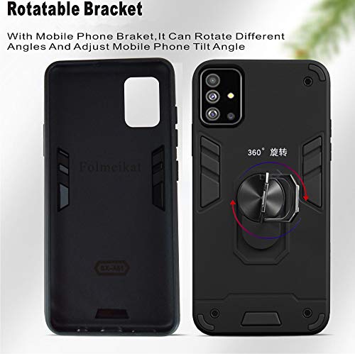 Cuoqing Cover Samsung Galaxy A51 con Pellicola Vetro Temperato, Antiurto Protezione Silicone con Kickstand Custodia per Samsung Galaxy A51 (Nero)