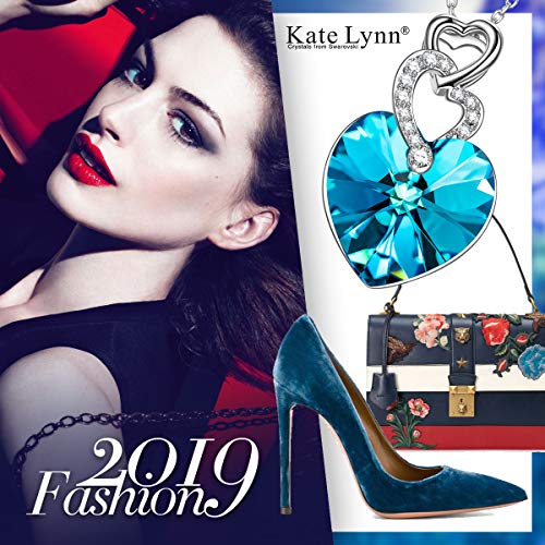 Kate Lynn Cuore a Cuore Collana Donna Pendente Ciondolo Blu Cristalli Swarovski Gioielli Moda Idee Regalo di Compleanno San Valentino Festa della Mamma Natale per Lei Ragazza Fidanzata Moglie Amica
