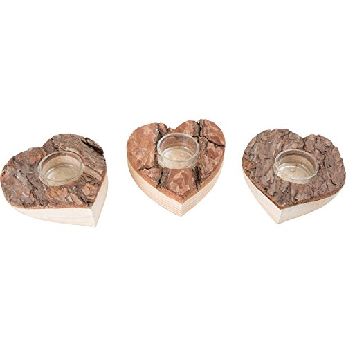 Descrizione del prodotto: lotto di 3. Questi portacandele in legno massiccio aggiungono loro note di amore e romanticismo alla dolce lume di candela.