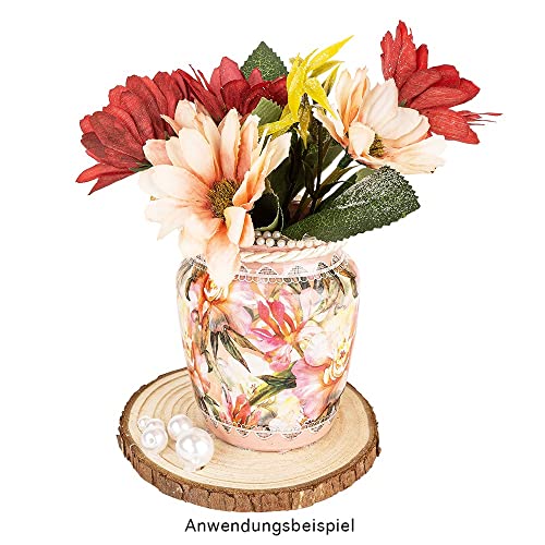 Possono essere utilizzate anche come sottobicchieri per statuine o candele e decorate il vostro tavolo. Attaccatele come preferite come targhette per lavori artigianali e confezioni regalo. Attaccare i dischi su carta e applicare un motivo 3D. I dischi sono adatti anche come base per colori acrilici, pozzetti e pietre decorative. Non ci sono limiti alla creatività.