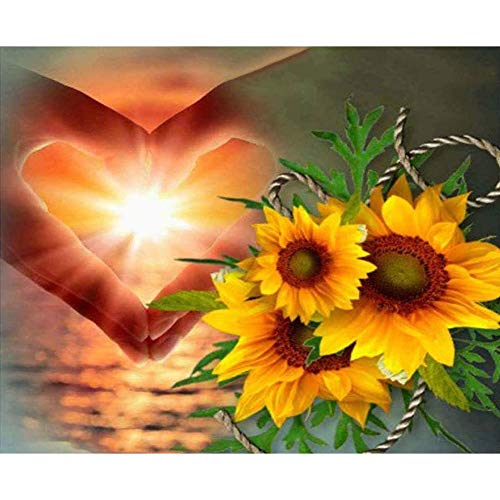 Cuore e Girasole 5D DIY Diamond Painting Fiori Kit Completo Pittura Diamante 5D Fai da Te Completo Pittura Mosaico 5D Decorazione da Parete 40x30cm