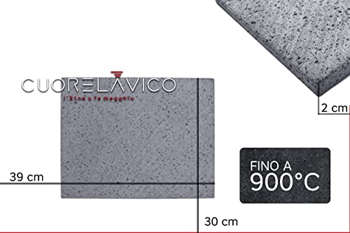 CUORE LAVICO - KIT PIASTRA REFRATTARIA IN PIETRA LAVICA ETNEA PER PIZZA 39X30X2 CM + PALA| FORNO A GAS, ELETTRICO E BARBECUE PER PANE E PINSA - MADE IN ITALY