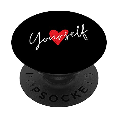 Cuore minimalista rosso Love-Yourself Positive-Vibes su nero PopSockets PopGrip Intercambiabile