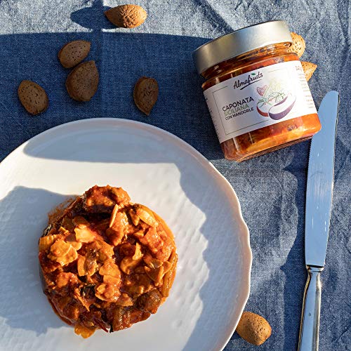 La caponata Almasiciliy ha il gusto inconfondibile della caponata di melanzane siciliane, fedele alla ricetta tradizionale, con un accento croccante di mandorle tostate che ne esalta il gusto inconfondibile. Arriva dalla Sicilia direttamente a casa tua, pronta da portare in tavola come antipasto ricco o piatto unico ogni volta che hai voglia di estate. Adatta ad un'alimentazione vegetariana e vegana.