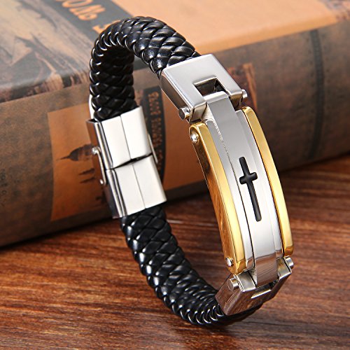 Cupimatch Acciaio inossidabile religioso croce da uomo pelle Bracciali Bracciale Braccialetto 21.5cm