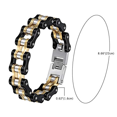 Cupimatch Bracciale da uomo, 16 mm, in acciaio inox, catena per bicicletta, catena per moto, lucido, stile Rock Link, argento nero, colore: Colormix 2., cod. CM-17-10