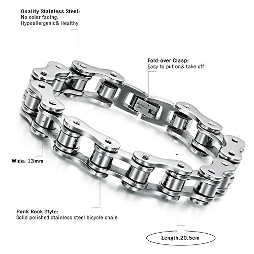 Cupimatch, bracciale da uomo largo 13 mm, in acciaio INOX lucidato, stile punk rock, colore: argento