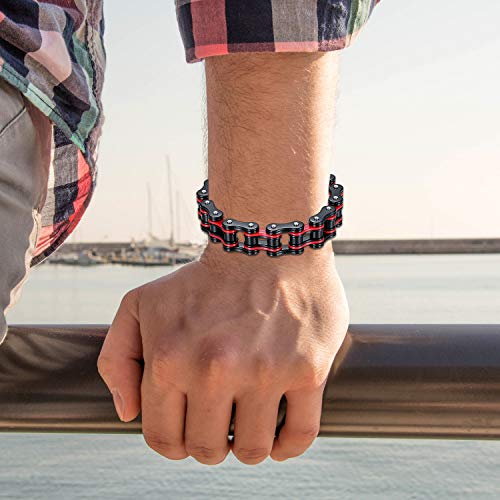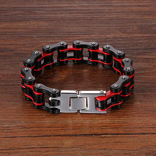 Cupimatch Uomo Braccialetto catena bici acciaio inossidabile grande larghezza Hip Hop nero rosso