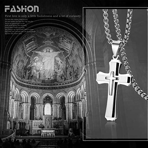 Cupimatch Hip Hop Uomo Collana Catena Acciaio Inossidabile Pendente Ciondolo Croce Liscio Argento Regalo di Halloween