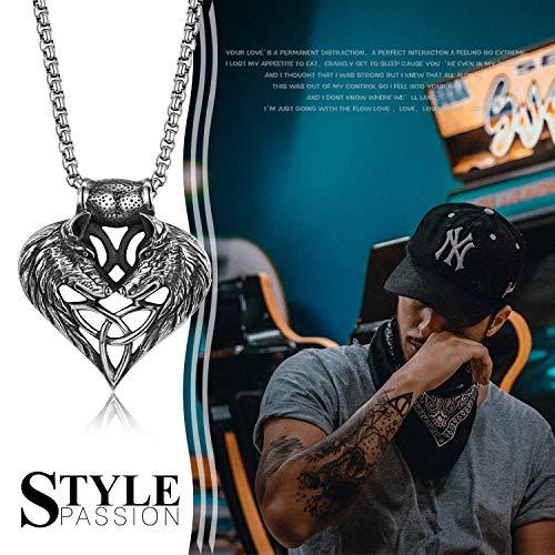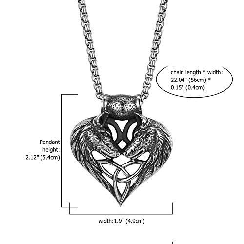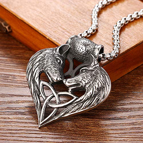 Cupimatch - Collana con ciondolo a forma di cuore con ciondolo a forma di testa di lupo con amuleto celtico, 55,9 cm