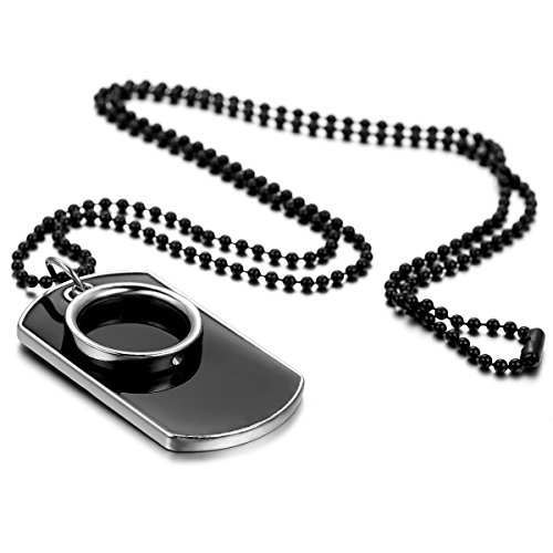 Cupimatch, Collana con ciondolo per uomo a forma di piastrina con anello, in stile da motociclista e di ispirazione militare, lunghezza 69,8 cm