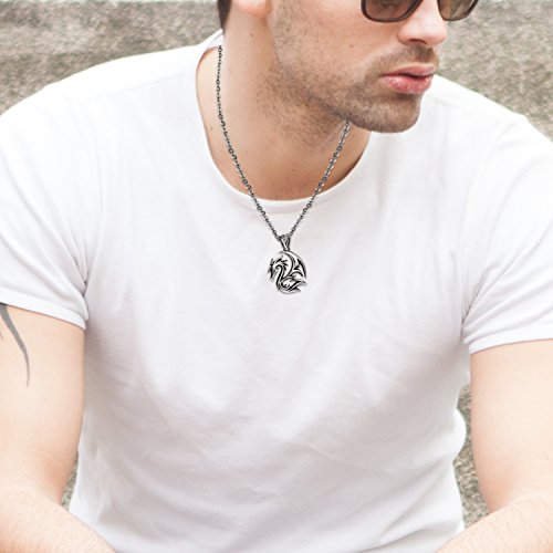Cupimatch Collana da uomo con drago gotico, in acciaio inox, 55 cm, per ragazzi e uomini, argento,